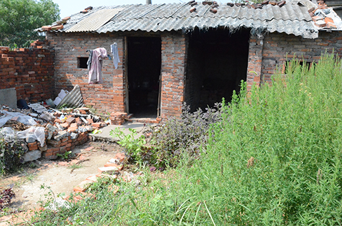 在里一片杂草丛生,几乎没有走路的地方。齐腰深的杂草丛中,一间低矮废旧、无法遮风避雨的破旧砖房深藏期间,室内一张简易的木板床,上面零乱地放着破旧的衣服,快要倒塌的灶台上架着一口黑漆漆的小锅,没有水,没有日常用品,几乎见不到能吃的东西。