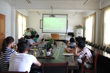 检查组观看湖北神农本草中药饮片有限公司的汇报视频