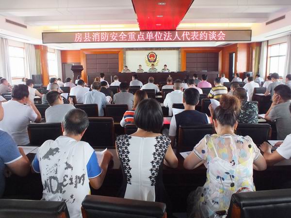 今日房县网讯 通讯员汪莹 报道:为全力做好抗战胜利70周年纪念活动消防安保工作,近日,县公安消防部门对辖区100余家安全重点单位法人代表进行集体约谈,并逐一签订《消防安全责任书》。