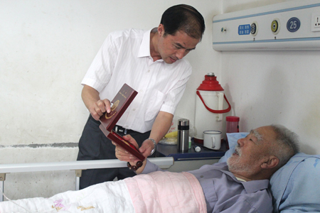 今日房县网讯 记者 王玮 报道:今年是世界反法西斯战争胜利暨中国人民抗日战争胜利70周年,带着全县人民对抗战老兵的崇敬之情,31日上午,县委书记柯大成一行看望慰问了抗战老兵王守义,共忆难忘的烽火岁月,共话革命精神的传承。县委常委、组织部长陈渊,县委常委、县委办主任张永平参加慰问。