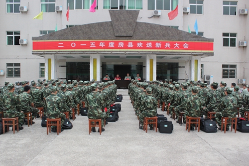 今日房县网讯 记者 陈锐 报道:9月9日,房县举行2015年欢送新兵大会。今年应征入伍的新兵们带着家乡亲人的嘱托和期望,奔赴祖国各地军营,迎接光荣的军旅生涯。县委常委、人武部部长邵吉民,县人武部政委易永年,副县长石教辉出席欢送大会,并为部分入伍新兵戴上了光荣花。
