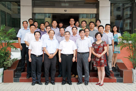 梁伟年与县委宣传部机关干部、县新闻中心、文明办、广电局、文联等单位的负责同志合影留念