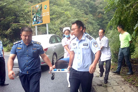 13日上午11:20左右,县路政大队执法人员董玉丁、刘洪林、邵定明三人巡查至野人谷境内“十回首”路段时,发现一轿车撞在路边的防撞墙上,车上二人受伤,其中副驾上的女乘客腰部受重伤,情况十分危急。见此情景,董玉丁等人立即拨打110、120电话,一方面及时救人,合力把伤者抬下车,找来雨伞为伤员挡雨,和伤者交谈沟通,稳定伤者情绪;一方面维护疏导交通秩序,保证过往车辆和行人安全通行。20分钟后,110和120赶到现场后,三位路政员又协助医护人员、警察将受伤者抬上救护车,为伤员抢救赢得了宝贵的时间。 (温协文 摄)