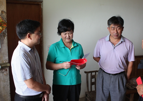 徐锦凤一行在尹吉甫镇玉堤店村村民谢占陆家中调研