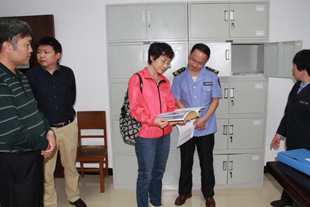 夏席珍一行在红塔镇食品药品监督管所查阅档案资料