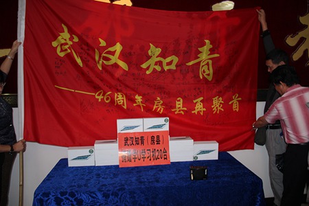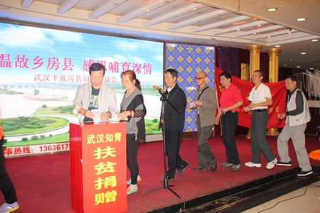 在县老年大学举行的武汉知青四十周年联谊活动中,武汉知青们向县老年大学捐赠了20台平板电脑,并冒雨前往凤凰山烈士陵园祭祀武汉知青陈寓年烈士。当天下午,武汉知青还组织了对军店镇中村精准扶贫募捐活动,现场捐资10000元,之后举行了“重温故乡房县 感恩哺育深情”座谈会,共话往事,畅想未来。大家表示,以后将与房县长期保持联系,共同建设“第二故乡”。