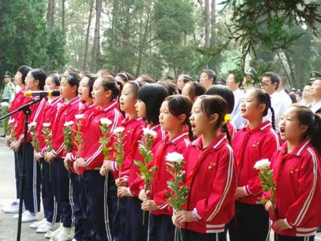 活动中,房县实验小学40名少先队员代表全县少年儿童向烈士献唱《我们是共产主义接班人》,并敬献了鲜花。