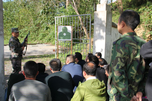 今日房县网讯 通讯员邹坤 报道: 9日,县委党校秋季科干班的50多名学员来到县人武部民兵训练基地,接受国防教育,并参加实弹射击。