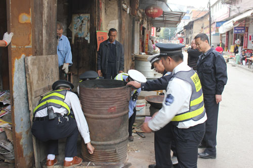 今日房县网讯 记者赵爱平 报道: 8日,由公安交警、城管局等单位组成的市容管理综合执法专班来到城关镇北关社区对个别超门店经营商户进行劝导,整个执法过程没有争吵,商户自觉接受批评教育,表示马上整改。