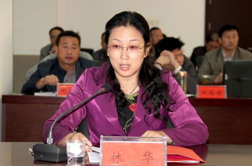 副县长林华汇报我县创建省除“四害”先进城区的经验和做法
