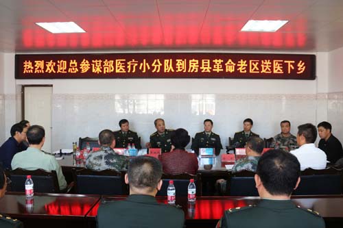 总参谋部政治部秘书长王云诚表示,总参医院为响应党中央号召,派出部分专家来到房县进行医疗支援;革命时期总参人与房县人民结下深厚友谊,房县的山山水水遍布总参人的足迹,总参人为促进房县卫生事业发展做出了巨大贡献,铸就了房县卫生事业发展的历史丰碑,当年参加医疗队的医务人员也始终铭记着这片热土;此次总参谋部医疗小分队再赴房县老区,是为房县卫生事业的发展再尽绵薄之力,今后还将加大对房县革命老区医疗、资金等方面的扶持力度。