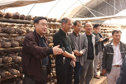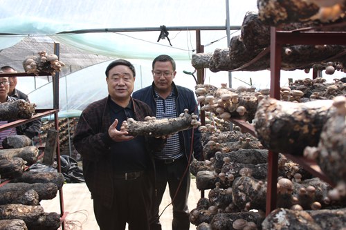 何建平、李志权一行了解沙河乡卢家坪村椴木食用菌生产情况