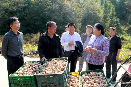 省残联党组书记、理事长陶慧芬一行在土城镇龙坪村残疾人食用菌扶贫基地调研