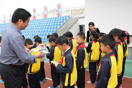为东城小学学生发放宣传节粮宣传手册