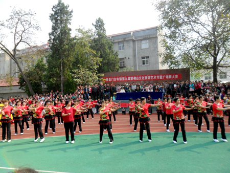 广场舞比赛在友好,和谐、热闹的气氛中开幕,来自全镇各地的14支代表队,在雄壮的乐曲声中进场,并展开了广场舞竞技角逐,队员们身着新颖彩妆,舞姿轻盈美妙,似仙女下凡,像嫦娥奔月,不时赢得观众阵阵喝彩。