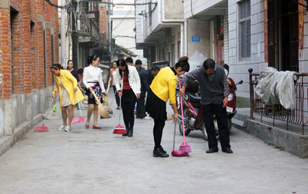 房县一中党员教师清扫街道垃圾
