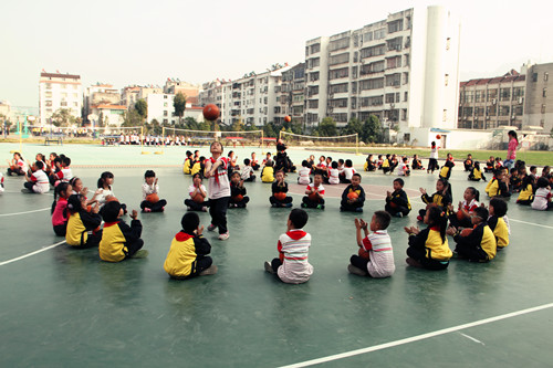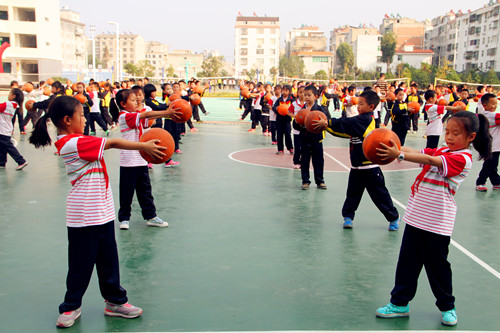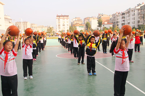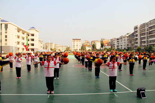 该校校长卢清泉认为:“教育就是有方法的带小孩们玩,然后寓教于乐。”因此,每天大课间40分钟时间,除了做国家规定的《雏鹰展翅——第七套广播体操》、《武术健身操》外,还轮流做篮球操、足球操,以达到“缓解学生学习压力、调节疲劳、提高运动兴趣”的目的,篮球操已经逐步成为该校继足球操之后的又一“必修课”。