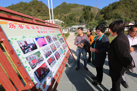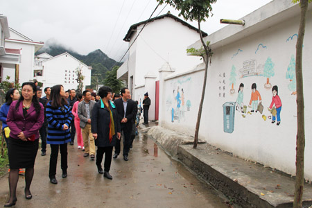 县委常委、宣传部长徐锦凤在竹溪县委常委、宣传部长彭艳的陪同下参观中峰镇同庆沟片区农村精神文明建设