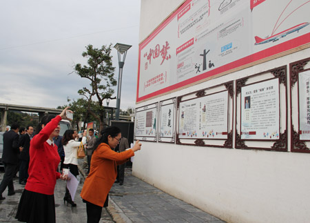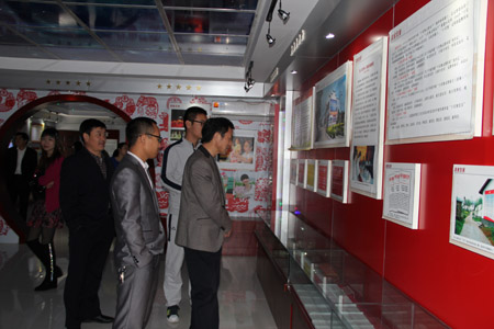 学习组成员在参观罗家坡村十星级文明创建展览馆