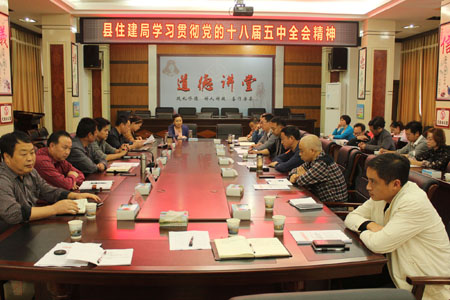 11月2日,县住建局召开专题会议。会议传达学习了党的十八届五中全会精神及县委扩大会议精神,要求全体干部结合实际全力推进城市和保障房建设;扎实开展好精准扶贫、工程质量和农村生活垃圾治理工作;加强干部作风和党风廉政建设,严格落实“两个责任”,振奋精神,适应新常态,全面完成住建各项目标任务。 (张均 杜斌 摄)
