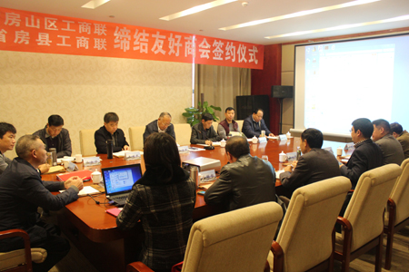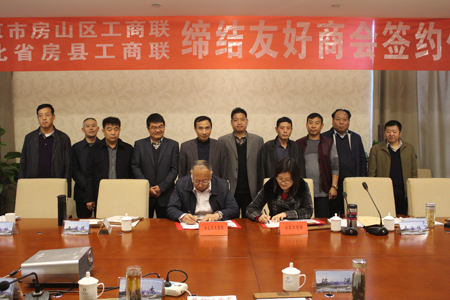 焦启超与我县工商联主席张蕊在《友好商会协议书》上签字,房山区工商联向我县捐赠了5万元扶贫助学金,双方还就如何进一步密切合作进行了交流探讨。