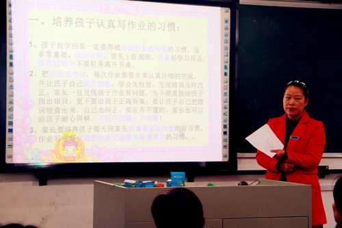 会上,各班主任做了热情而洋溢的讲话,代表学校感谢家长一直以来对学校的大力支持,然后向全体家长介绍了学校的办学理念、发展方向以及近这一年来所取得的成绩,并且分析了目前学校的情况,向家长们提出了一些教育孩子的建议,针对当前如何预防校园安全、交通安全以及如何培养孩子良好的习惯进行了具体讲解,希望家长加强与学校的沟通、加强与子女的沟通,为共同教育好孩子而努力。班主任老师还分别就“好习惯、益终身”、“成功——我们共同的心愿”、“一切为了孩子”、“家校共携手、培养好习惯”、“教会孩子安排时间”、“养成认真完成作业的习惯”、“和孩子一起学习”、“建立错题本”、“如何引导孩子背书”、“用口算提高速度”、“用心记录孩子成长点滴”等主题与家长进行沟通与互动。家长们也积极建言献策,在肯定学校的教育工作的同时提出许多合理化建议。