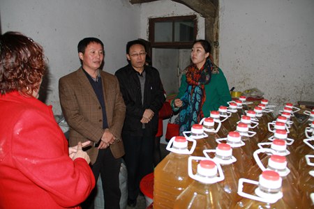王世昌一行首先到土城镇黄酒民俗村参观考察,对神农泉黄酒、兴祥黄酒、庐陵王黄酒等黄酒生产企业,以及部分传统黄酒作坊的生产经营情况实地调研;并就房县黄酒产业发展现状与困境、如何借助“互联网+”平台做大做强等话题与县直相关部门负责人、企业家进行了交流座谈。