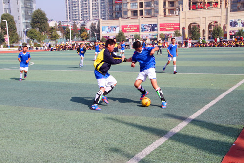 绿茵场上,现场气氛热烈,有五六年级近900名学生呐喊助威,比赛高潮迭起,运动员们奋力拼抢、跑位、射门,全身心的投入比赛,他们你拼我抢,你来我往,飒爽英姿尽显无遗。尽现足球与运动的魅力,展示了队员们的风采,最终六年级足球队以1:0略胜五年级足球队。