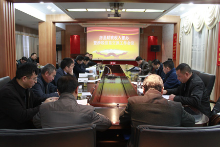 今日房县网讯 记者 高书文 报道: 11月20日,我县召开财政收入督办暨涉税信息交换工作会,通报今年以来财政收入情况,分析当前财税形势,部署涉税信息交换工作,围绕全年目标任务进一步落实责任、鼓劲加压。县委常委、常务副县长王家波出席会议。