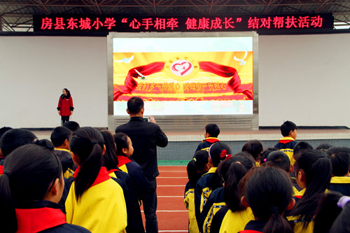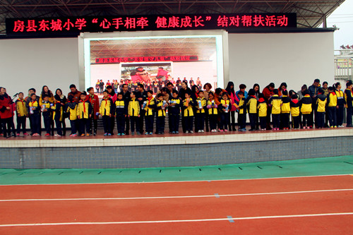 今日房县网讯 通讯员李英报道:为了让留守儿童健康快乐的成长,感受亲情的温暖,19日,东城小学举行了“心手相牵,健康成长”关爱留守儿童师生结对帮扶活动,对全校80余名优秀留守儿童进行了捐赠。