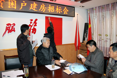今日房县网讯 通讯员王俊 报道: 11月24日,尹吉甫镇举办生态扶贫搬迁贫困户建房招标大会。按照招投标议程,17位业主前来参加招投标会议,最终5位业主中标,成为尹吉甫镇生态扶贫搬迁贫困户建房项目施工方。至此,尹吉甫镇生态扶贫搬迁工作正式启动。