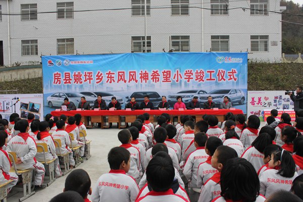据悉,姚坪乡东风风神希望小学由东风公司捐资93万元,房县政府配套157万元在原姚坪乡小学基础上扩建而成。此次扩建工程中,新建了学生食堂,学生宿舍综合楼902平方米,加固维修教学楼860平方米,新建厕所80平方米。工程于2013年12月开工建设。