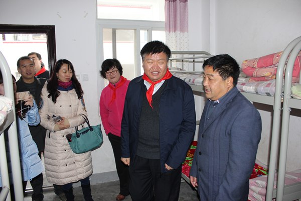 竣工仪式后出席活动的领导了解学校教育教学工作情况