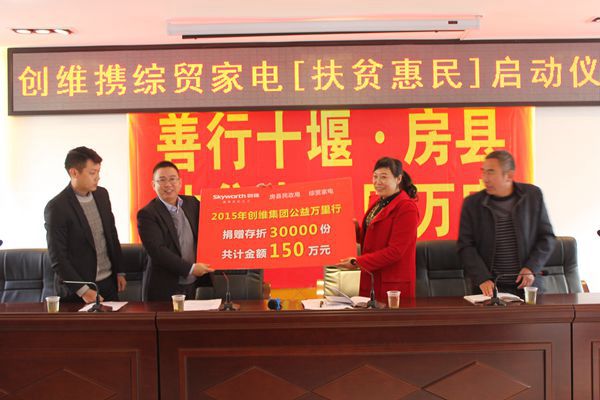 创维集团十堰办事处经理黎骏代表两家公司捐赠惠民购家电存折
