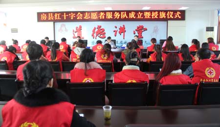 今日房县网讯 记者田兰兰 通讯员黄怡 报道: 12月5日是国际志愿者日。4日,房县红十字会志愿者服务队正式成立。市红十字会副会长郭小玲,县红十字会会长、副县长林华出席志愿者服务队成立暨授旗仪式。