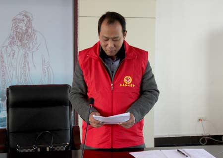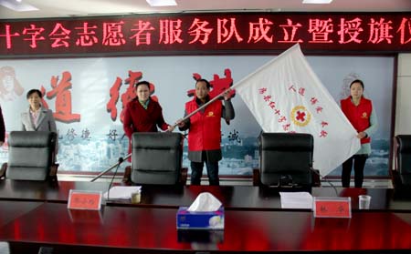 县红十字会会长、副县长林华为房县红十字会志愿者服务队授旗