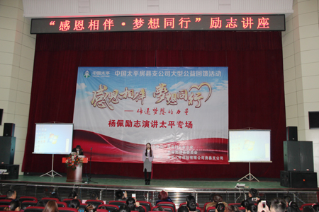 今日房县网讯 通讯员 杜锐敏 报道: 5日下午,县影剧院座无虚席,由县妇联、团县委主办、太平人寿保险房县支公司承办的“感恩相伴、梦想同行——传递梦想的力量”青春励志讲座活动在这里举行。800多名青少年及其家长亲耳聆听了无臂女孩杨佩的青春励志演讲。
