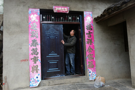 12月1日,野人谷镇马里村一组村民赵举贤在自家新装的大门口留影。马里村民赵举贤属该村贫困户,在村两委的帮助下房子盖好后,由于缺少资金一直没能安装大门,目前正值初冬,马里村海拔2300米,属高寒山区,昼夜温差大。县人民医院精准扶贫工作队听说此事后,马上联系为其赶制定做了一道防盗门。12月1日上午,精准扶贫工作队第一书记刘肖峰亲自带领安装师傅为赵举贤安装上了这道防盗门。(裴中东 屈振坤 摄)