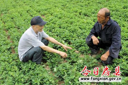 代大明(左)正在指导村民开展田间管理