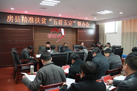 今日房县网讯 记者刘臣 报道: 9日,县长蔡贤忠在全县精准扶贫“五看五定”督办会上强调,要认真研究领会“五看五定”的内容,对照贫困户认定标准,以群众实际生活状况为依据,进一步摸清贫困村贫困人口和致贫原因。县委副书记张慧彬,县政府党组成员董诠闻出席会议。