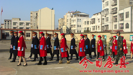 今日房县网讯 通讯员 吴丰涛 刘志全 报道: 15日,县职业技术学校高铁服务班学生正精神饱满地进行军训展示,北京商鲲教育集团的教官正在对该校高铁班进行军事化管理教学进行指导,这是县职校尝试进行多方合作办学,拓宽办学模式的一个缩影。