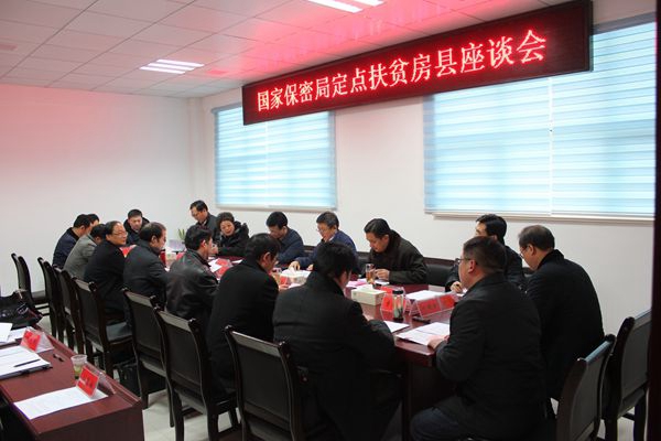 今日房县网讯 记者 陈锐 通讯员 向东风 刘双 报道: 12月19日,国家保密局机关党委书记王言彬来房,就对口扶贫房县相关工作进行交流座谈。省国家保密局局长李卫斌,市委常委、组织部长钟芝清,市委副秘书长、保密局局长乔瑜,县委书记柯大成,县长蔡贤忠,县委副书记张慧彬,县委常委王家波、陈渊、张永平、毛坚权,县政府党组成员董诠闻参加座谈。