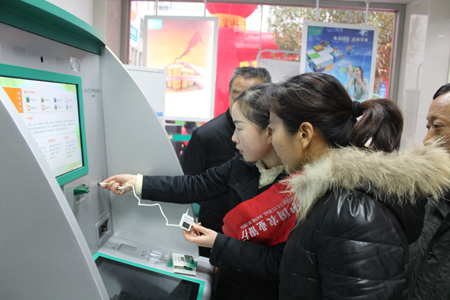 在咨询台及智能柜台前,农行员工向前来咨询的客户,详细介绍智慧银行提供银行卡开卡、存款、取款、转账、查询、各类理财、密码修改等多项服务的功能。开业当天,前来咨询和办理业务的客户超过百人。当日新开卡65张、激活社保卡84张、办理各类理财产品326万元、组织存款216万元。