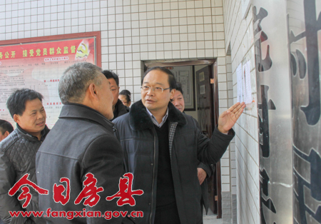 蔡贤忠查看万峪河乡中院村贫困户张榜公示表