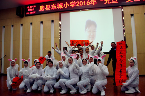 今日房县网讯 通讯员 李英 报道: 红红的灯笼传达出新年的气息,欢快的锣鼓敲打来节日的喜庆。12月30日晚,东城小学阶梯教室内灯光璀璨,张灯结彩,欢声笑语,暖意融融,该校全体教职员工欢聚一堂,载歌载舞,共同献艺,共迎新年。
