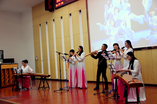 诗歌朗诵,乐器演奏,街舞领衔,扇子摇曳,高音独唱,音乐串烧,猜奖游戏……晚会在激情豪壮的大合唱《解放区的天》中拉开序幕;节奏铿锵激昂的《街舞》把演出推向了高潮,晚会在轻松愉快的《猜奖游戏》中结束。教师们一个接一个精彩的演绎,一次次“嗨爆”全场,让台下观众直呼过瘾,纷纷拿出手机、相机留下精彩瞬间,让教师们“赚足”眼球,共享丰盛文艺大餐。