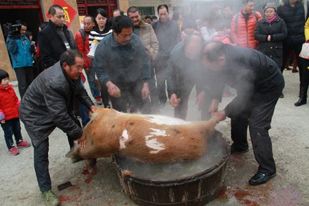 现场宰杀土猪