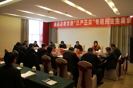 今日房县网讯 记者刘臣 报道:1月15日,房县县委常委班子召开“三严三实”专题民主生活会,市委常委、统战部长沈学强,市委第二巡回督查组组长王官勇,市纪委组织部部长李燕艳,市委组织部副主任科员李强全程参与并指导。县领导柯大成、蔡贤忠、张慧彬、姚天国、王家波、徐锦凤、陈渊、张永平、杜启学、高明哲、邵吉民出席会议。