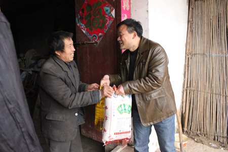 为扶贫对象送上慰问品和节日的祝福