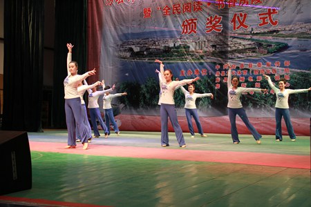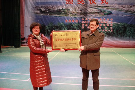 受省全民阅读办委托,县委常委、宣传部长徐锦凤向县文体局颁发了“全省全民阅读活动优秀项目”奖牌